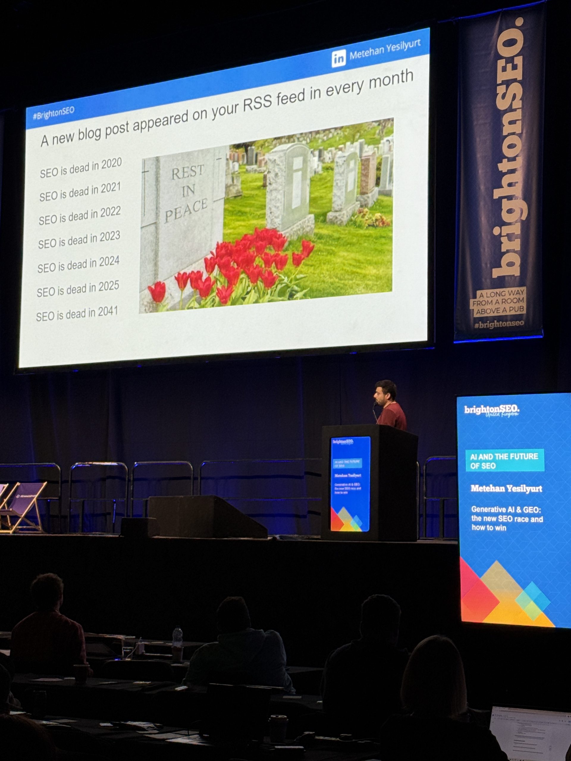 You can see my slide here: https://speakerdeck.com/metehanyesilyurt/brightonseo-metehan-yesilyurt-generative-ai-and-geo-the-new-seo-race-and-how-to-win