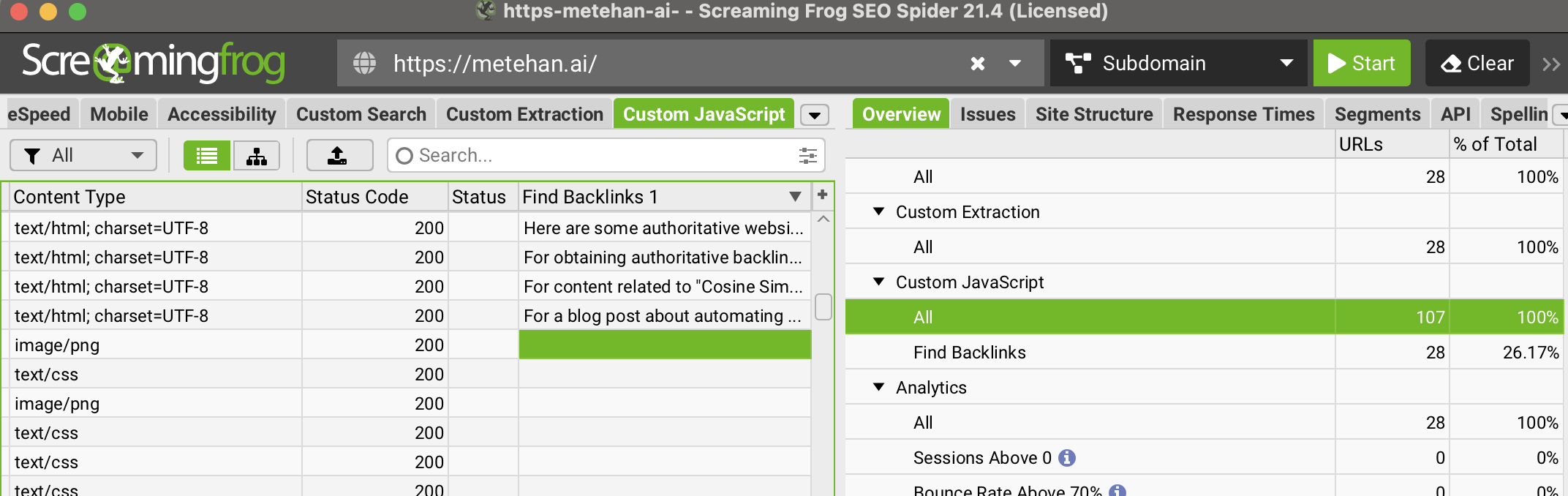 Here’s the GitHub link for JavaScript snippet in action: https://github.com/metehan777/screaming-frog-automated-backlink-outreach
