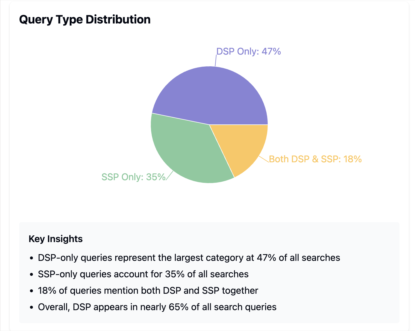 “The embedding signature suggests this content has strong potential to rank for informational queries about programmatic advertising platforms, particularly for DSP-related searches, but may need enhancement for SSP-specific queries.