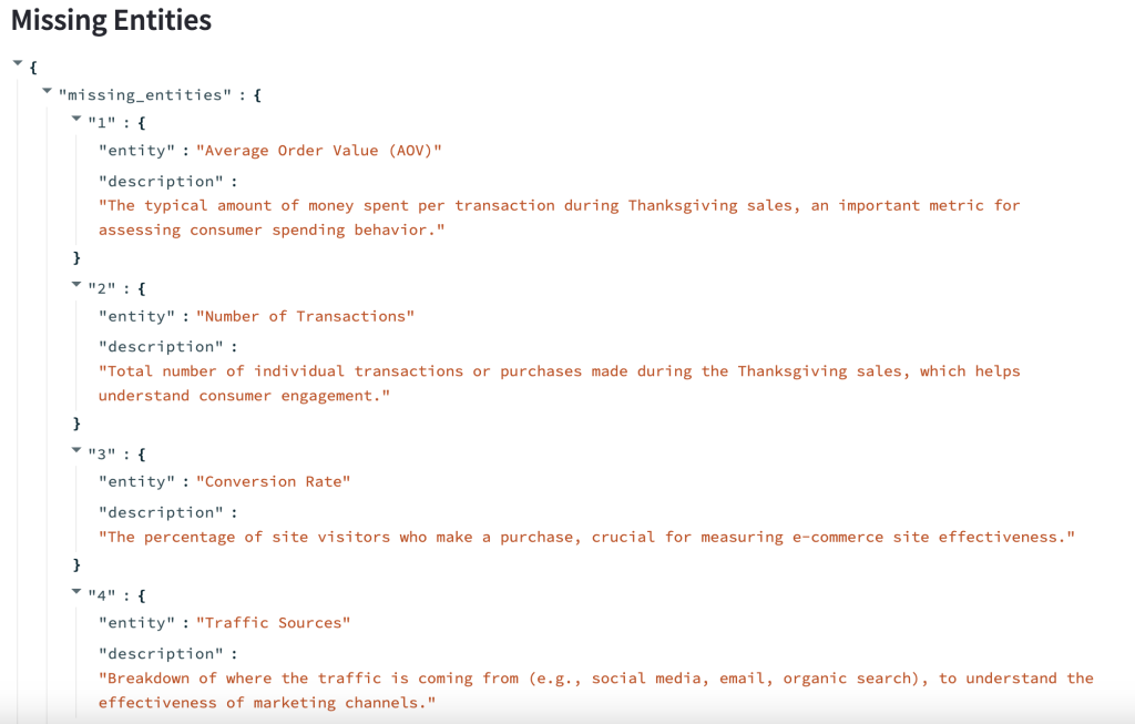 - Missing Entities: Detects gaps that could hinder content visibility.