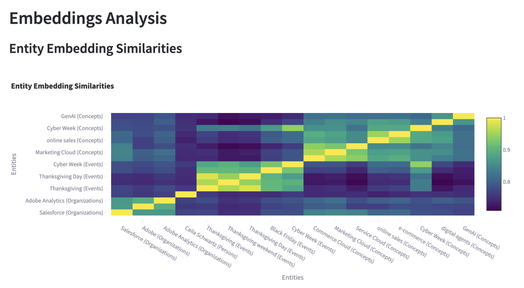 - Entity Embedding Similarities: Measures how closely related entities appear in the content.