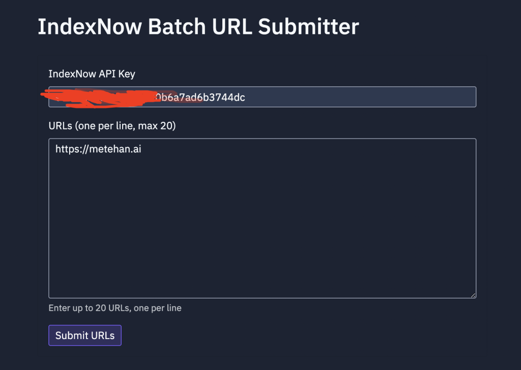 Let’s try my web app that is built for IndexNow. (Built with Replit Agent)