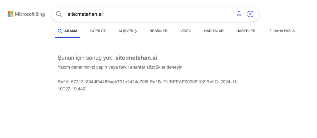IndexNow didn’t work for metehan.ai instantly, worked for an other domain appsamurai.com(already indexed on Bing, also SearchGPT) Still no results after 76 hours for metehan.ai