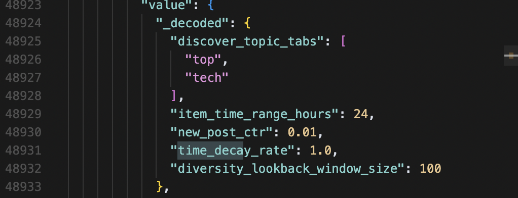 Because: Your research shows concrete controls such as l3_reranker_drop_threshold, l3_reranker_drop_all_docs_if_count_less_equal, new_post_impression_threshold, new_post_published_time_threshold_minutes + new_post_ctr, subscribed_topic_multiplier/top_topic_multiplier/restricted_topics, time_decay_rate, embedding_similarity_threshold, and discover_engagement_7d influencing ranking/selection. Range: early window = minutes; engagement horizon = ~7 days; retrieval list = dozens.